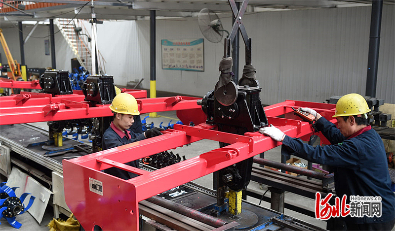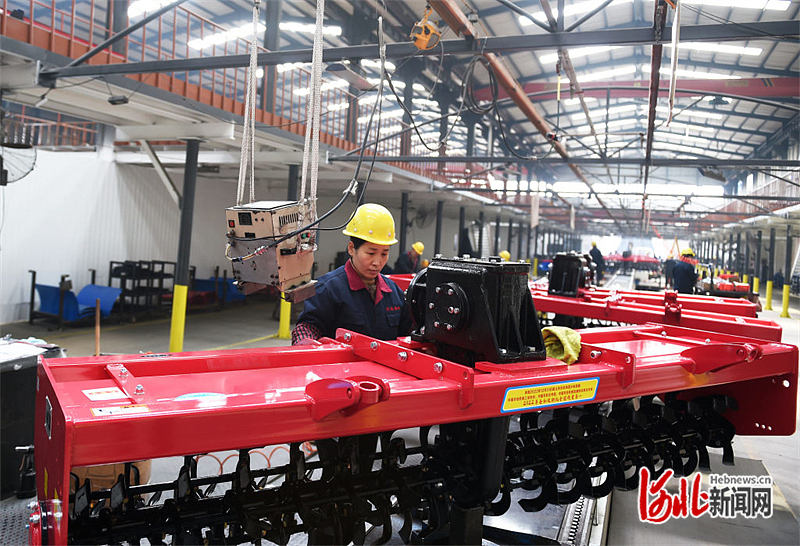 3月22日,国家级专精特新“小伟人”企业河北圣和农业机械有限公司工人在旋耕机安装出产线多家企业